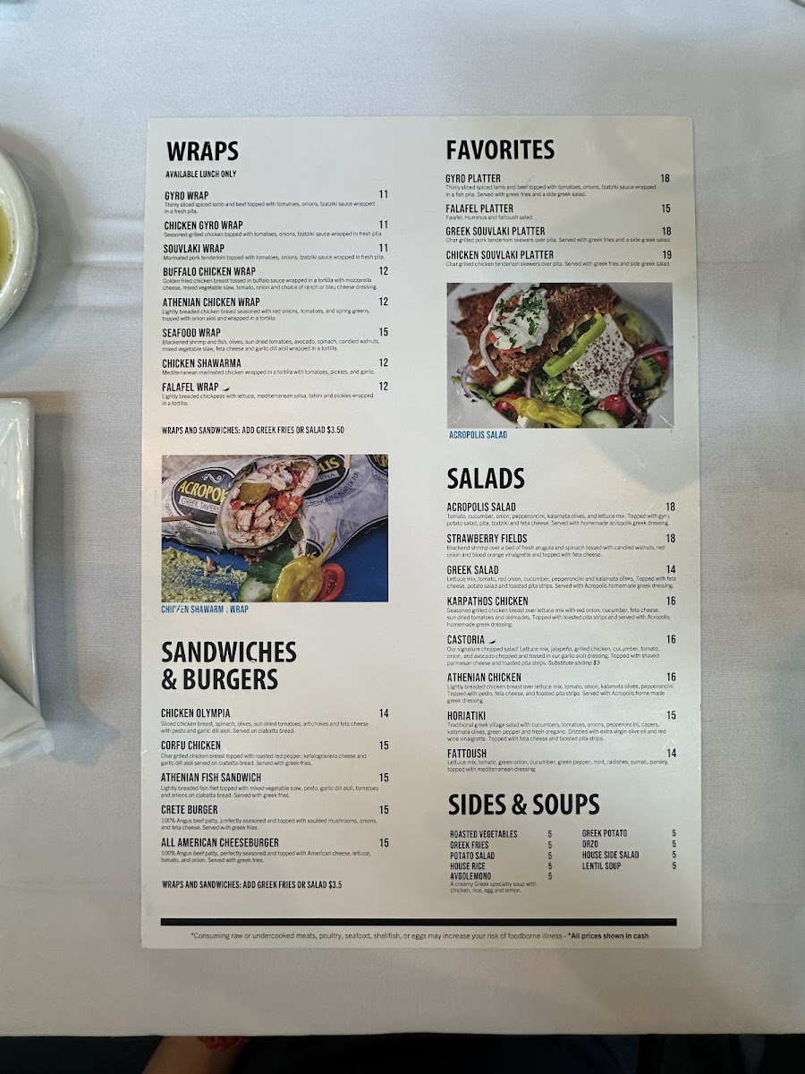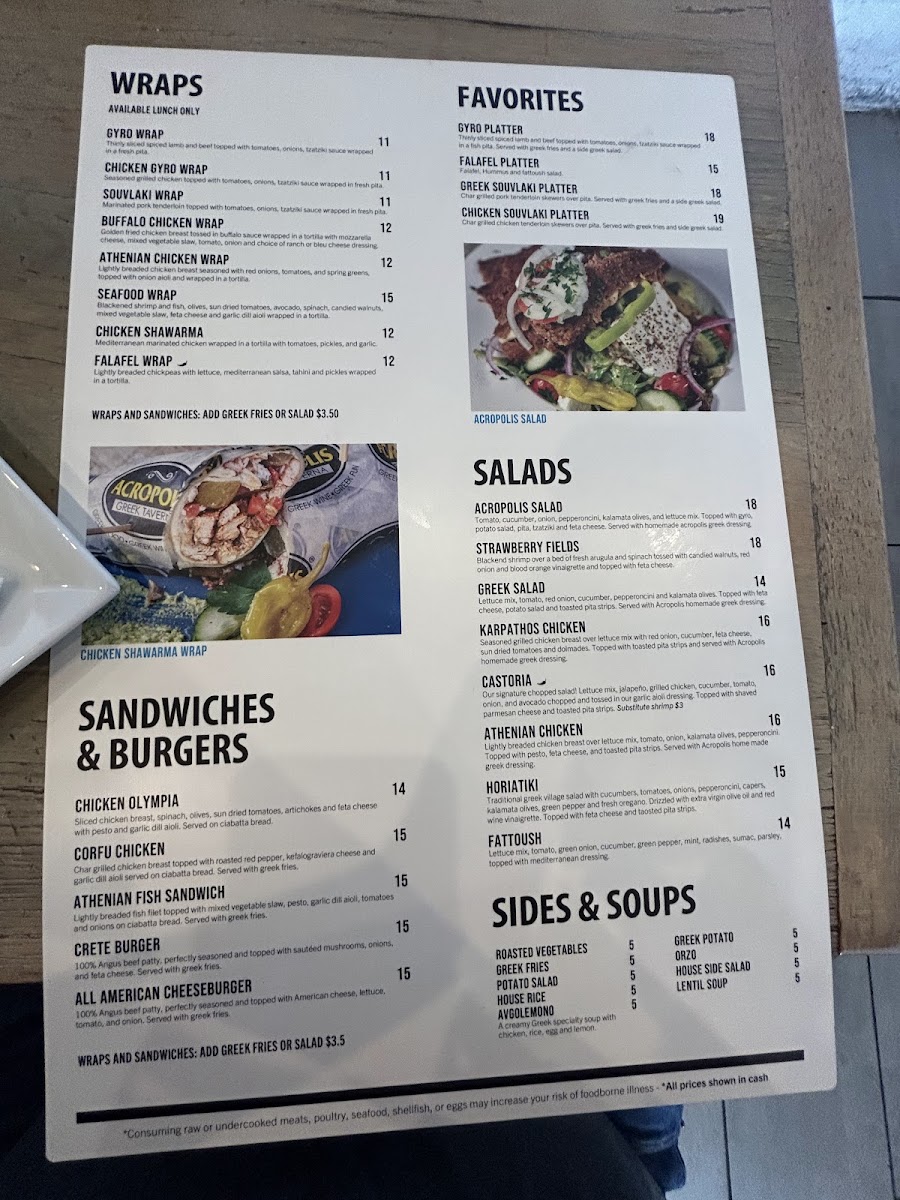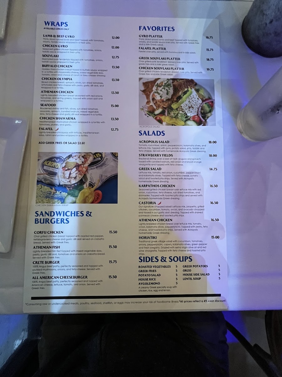 Tomato, cucumber, onion, pepperoncini, Kalamata olives, and lettuce mix tossed in Acropolis dressing. Topped with Gyro, pita, tzatziki and feta cheese.