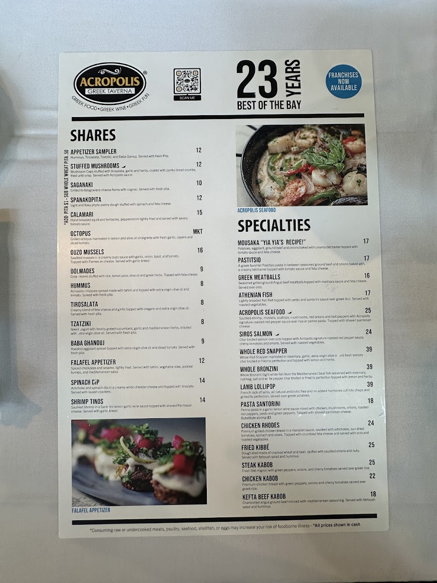 Sauteed shrimp, mussels, scallops, mushrooms, red onions, and bell peppers with Acropolis signature roasted red pepper sauce. Served over rice or penne pasta, topped with shaved parmesan cheese. Serves 10 people