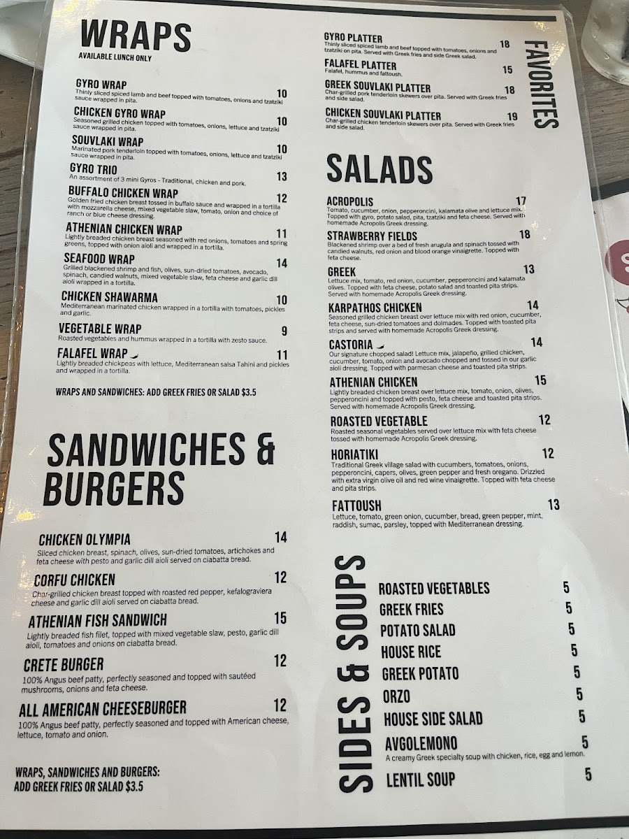 Thinly sliced spiced lamb and beef topped with tomatoes, onions, and tzatziki. Served with pita, Greek fries, and salad.